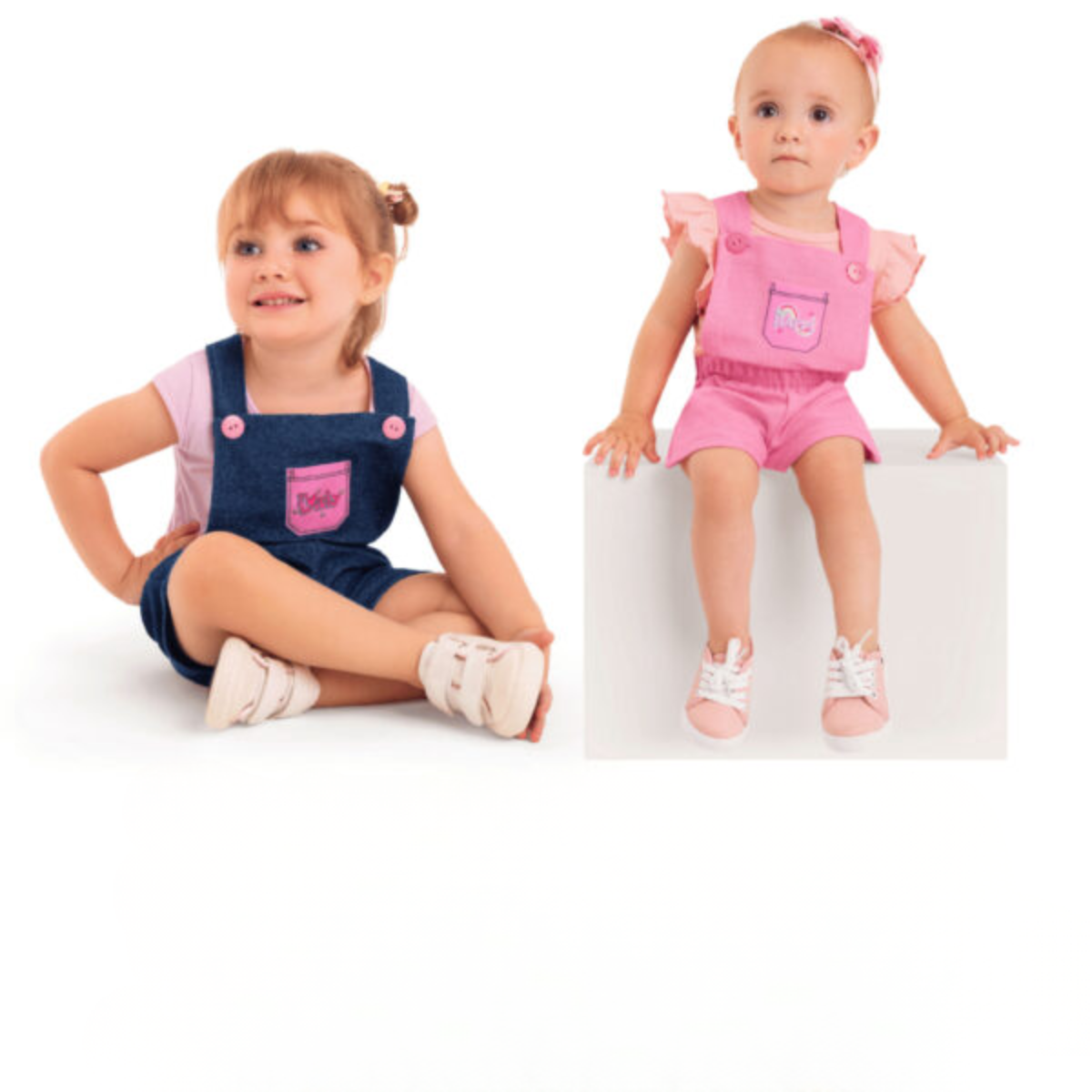 Deixe sua bebê estilosa e confortável com a jardineira moletinho jeans, perfeita para qualquer ocasião! ✨