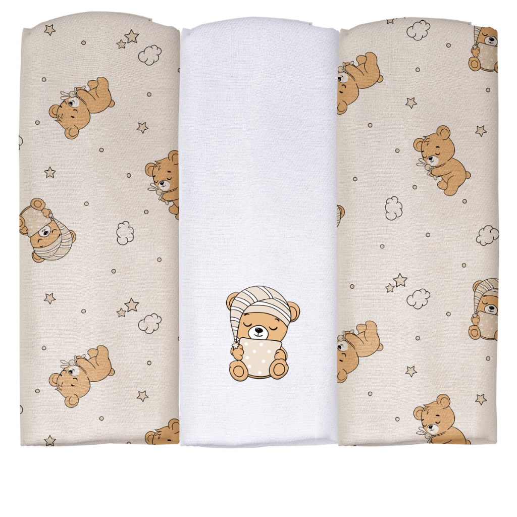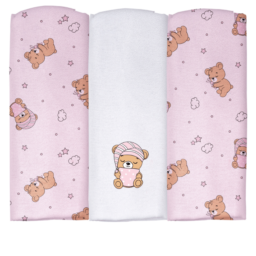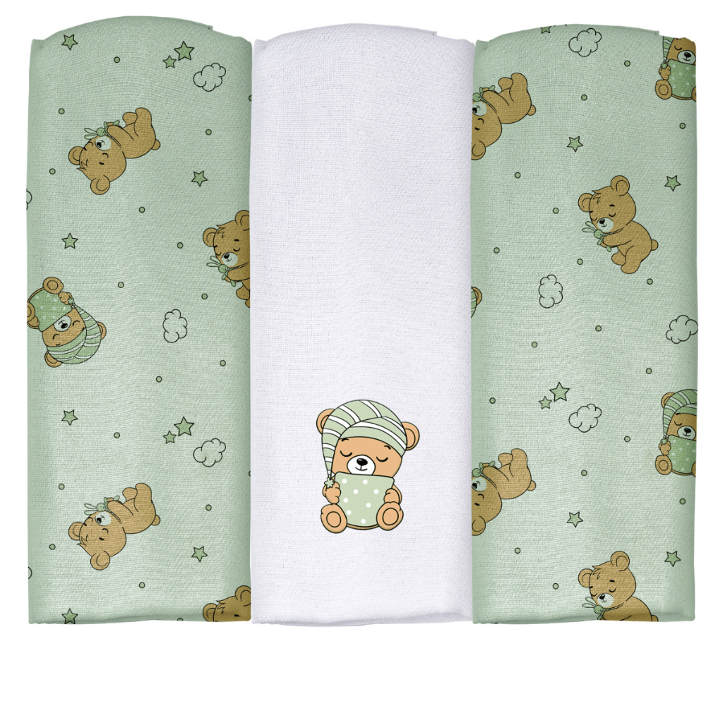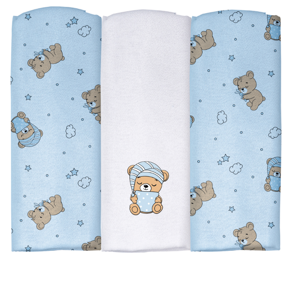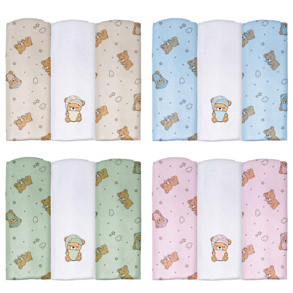 ✨ Kit 3 Cueiros Flanelados Ursinho 50x80cm – Enxoval de Bebê / Maternidade ✨