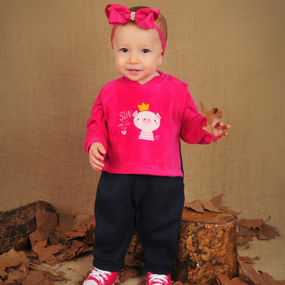 Macacão com Sobreposição em Plush e Bordado