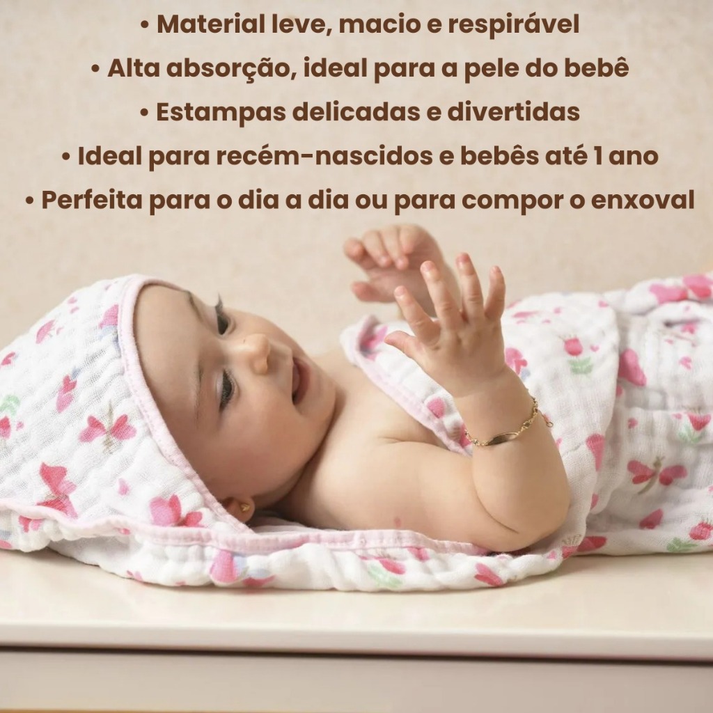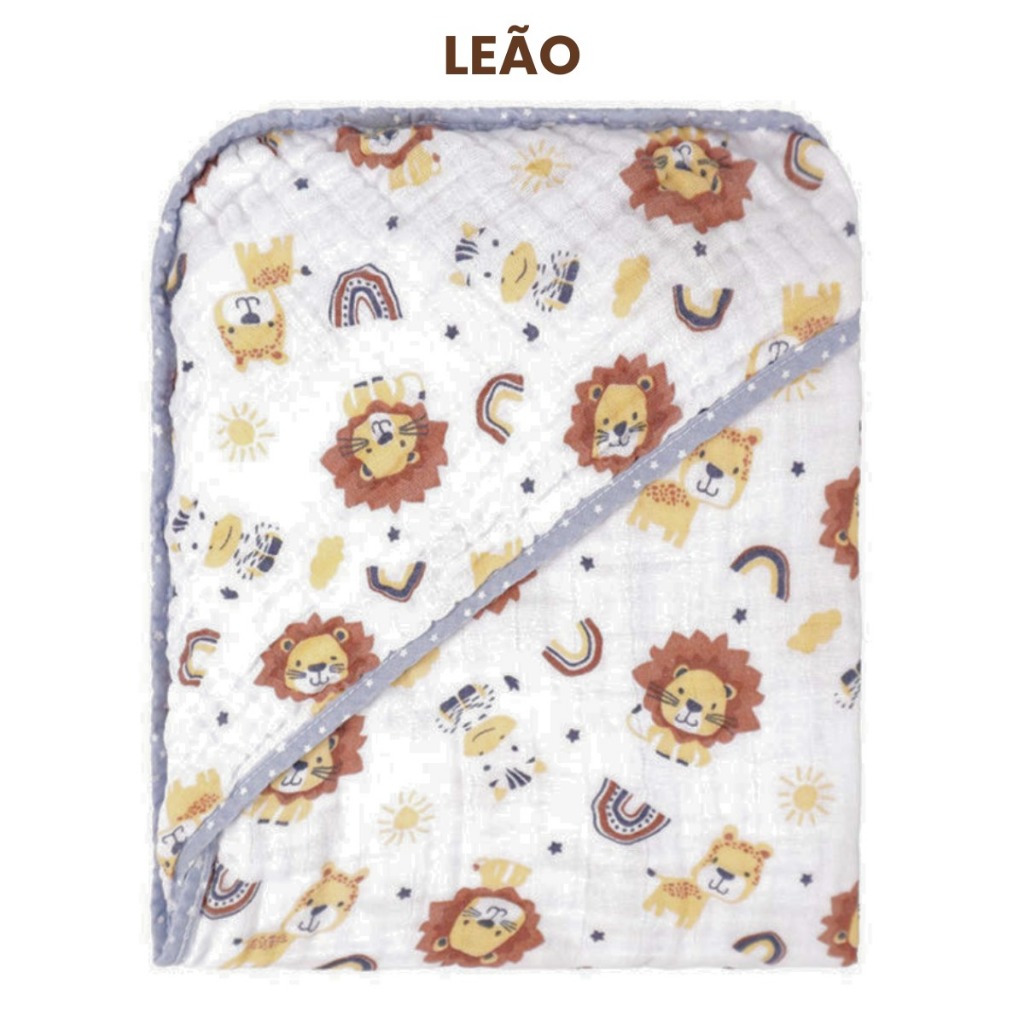 | Estampa | Panda Cinza, Leão, Borboleta, Arco Íris Rosa, 1 Borboleta + Arco Íris Rosa, 1 Leão + Panda Cinza |